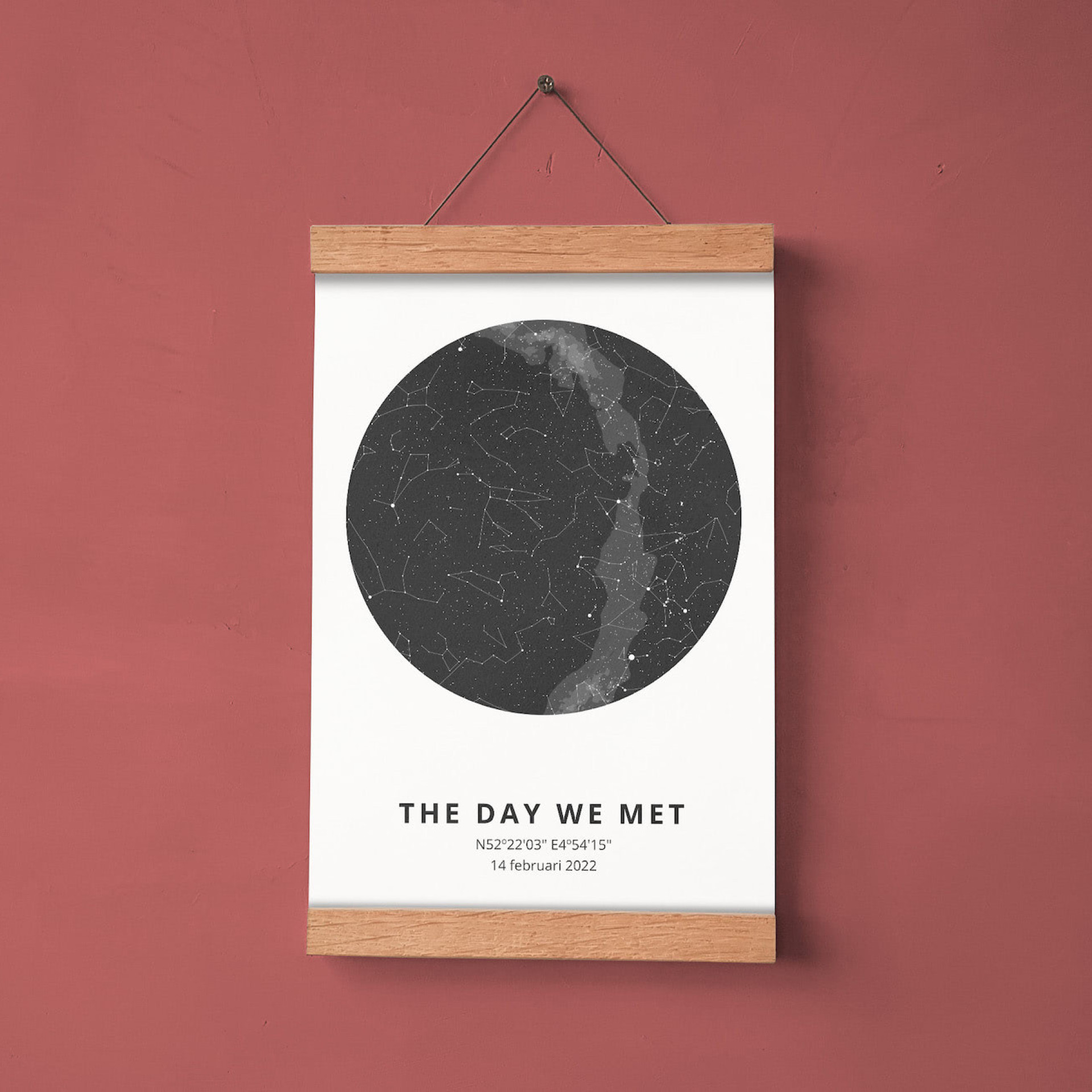 De geboorte van je kind, je trouwdag of een andere, belangrijke gebeurtenis. Je kunt ieder moment vastleggen met een sterrenposter van Printmijnstad. De sterren staan ieder moment anders en met onze sterrenhemel posters kun je de sterrenhemel van dat exacte moment terughalen.